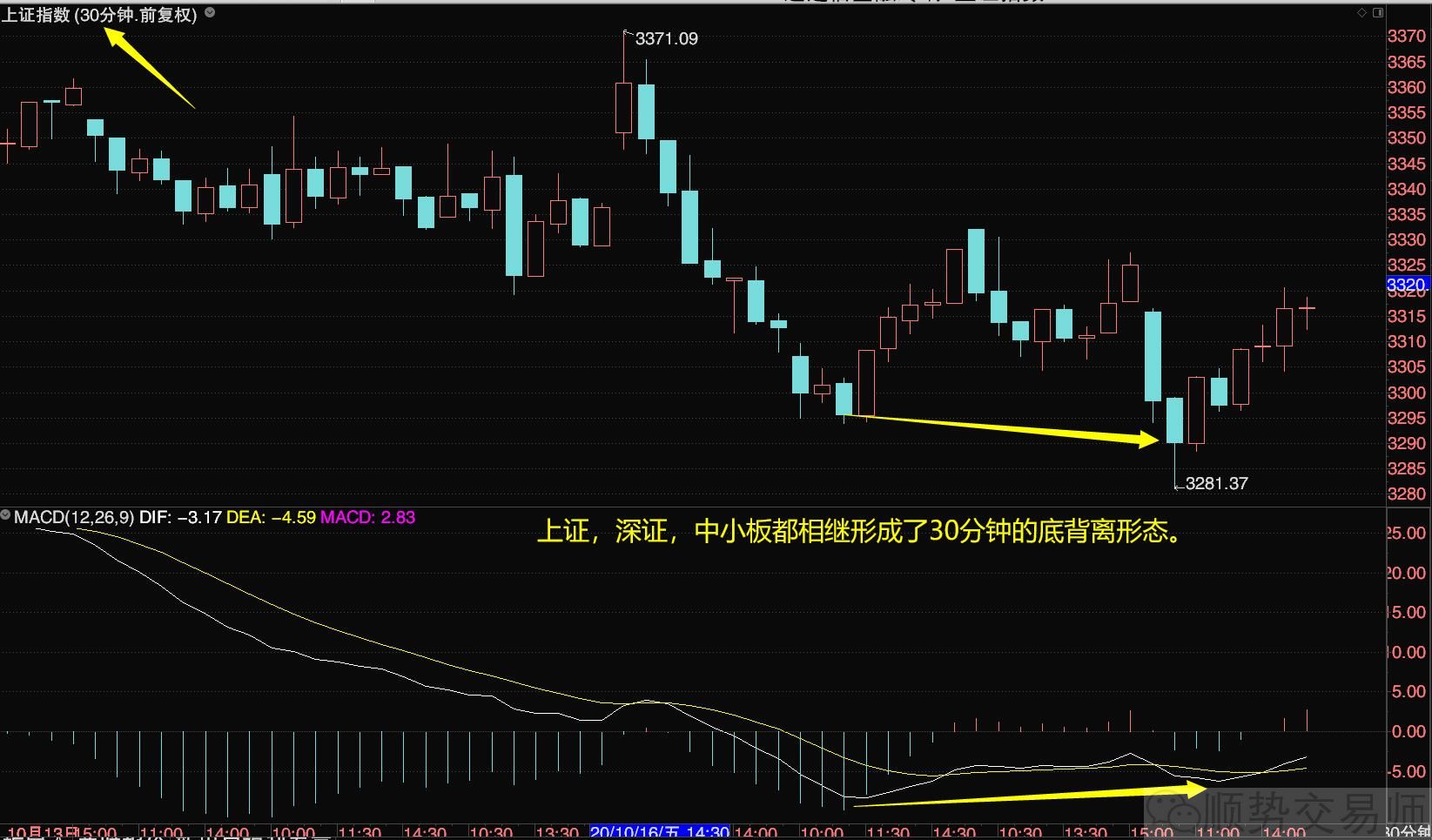 昨天讲到,几大指数再度下跌就要留意30分钟级别的底背离机会了。