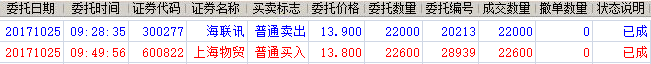 300277海联讯止盈出,获利4.51%;成功买入了牛股600822上海物贸!