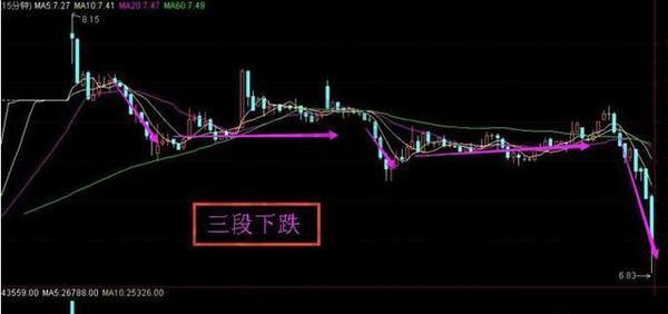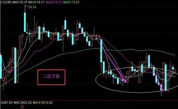 K线图知识解析,十五分钟K线图战法之三段下跌。