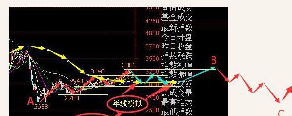 而如果不能够突破3295点,则3295点成为5178-2638-3295点以来的大C浪调整的起点,3295-3016为C1浪下跌浪,目前的反弹浪是C2浪,后市会继续开展中长线调整,时间较长,分别为C3主跌浪、C4反弹浪和C5下跌浪(见示意图)。