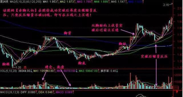 4:有的脚趾突破之后会出现缩量反压60线的走势,这和指数走势、庄家的仓位轻重等有关,只要不破60线,可以在芝麻点的区域适量吸纳,在股价重返五线之上时再次买入!