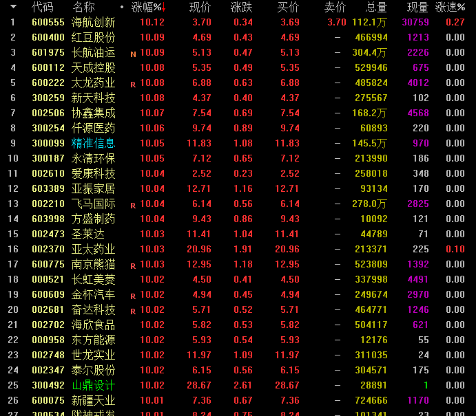 中线跟踪的个股,持续纷纷轮番表现,市场上,孔明监测今天最活跃的个股有精准信息、山鼎设计、元力股份、美锦能源、台基股份、辉丰股份、西安旅游、华塑控股、鹏起科技、永安林业、海得控制、双成药业、天成自控、国际实业、春兴精工、广东甘化、兴源环境、长城电工、福安药业、广和通等。