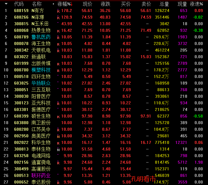 抗流感个股出现异动!受此影响,孔明监测到今天鲁抗医药、联环药业、四环生物、热景生物、海王生物、硕世生物、南卫股份、科华生物、西陇科学等个股最高涨停。