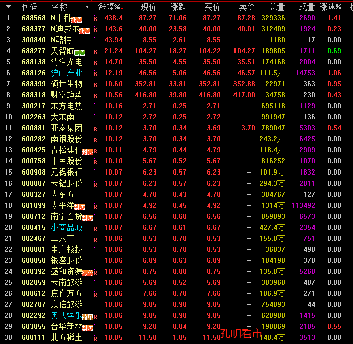 有色出现异动!受此影响,孔.明监测到今天中色股份、云铝股份、盛和资源、焦作万方、北方稀土、厦门钨业、五矿稀土、金田铜业、西藏珠峰、广晟有色、怡球资源、彤程新材、领益智造等个股最高涨停。