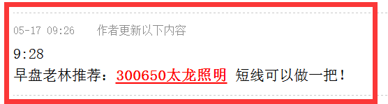 早盘老林推荐:300650太龙照明 短线可以做一把!
