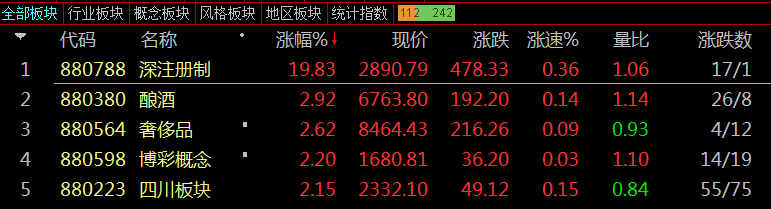 大家打开自己的券商交易(看盘)软件,就会发现:目前沪深两市已经有354个板块指数,最新增加的是“深注册制”板块!该板块继昨日创出历史记录以后(某股盘中一度暴涨近3000%),今日板块指数继续大涨近20%!炒作火爆程度令人瞠目。