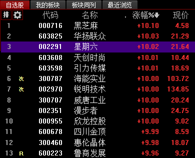 2连板11只:航锦科技、隆平高科、星期六、元隆雅图、富临精工、盛弘股份、海能实业、电声股份、哈高科、联环药业、京投发展。