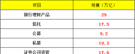 17日晚上出来一条信息:《关于规范金融机构资产管理业务的指导意见(征求意见稿)》。俗称“资管新规”,号称资产管理行业的“宪法”。这个《征求意见稿》其实已经酝酿很久了,从2015年就开始传言,今年2月份出了一次“内审稿”。 整个《征求意见稿》有29条,前面5条是定义和分类,比如资管产品和业务的定义,公募私募的定义,投资者类型的定义等等,就是先给你分门别类的定义好,你做什么业务对号入座就好了。这个新规直接会影响百万亿大资管资金的未来去向,以及会让资管市场的份额重新洗牌。目前资管的市场份额如下: