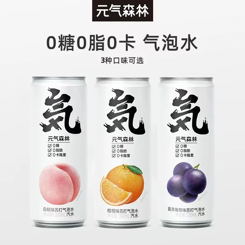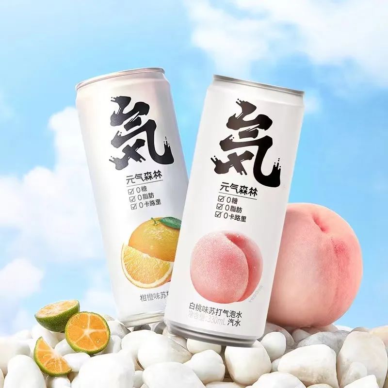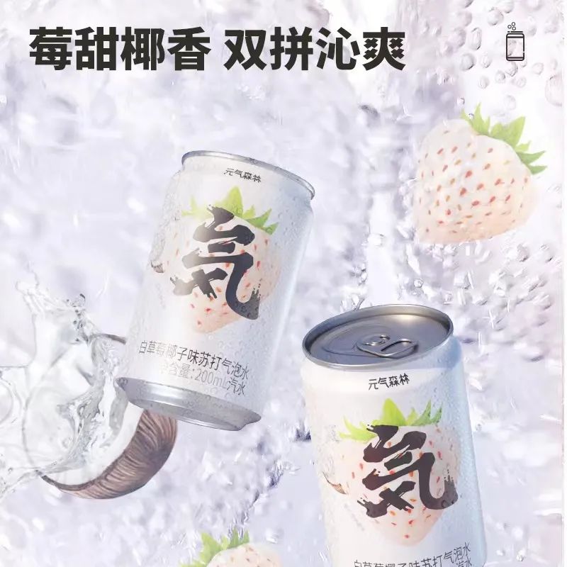 元气森林名称中就把“元气”这一健康属性与积极属性的词语占据。而在产品包装上“気”字直接对应气泡水满足的强势需要:畅爽,让消费者直接引发:汽很足,很畅爽的联想。否则元气森林为什么不大大的写:元或者0呢?