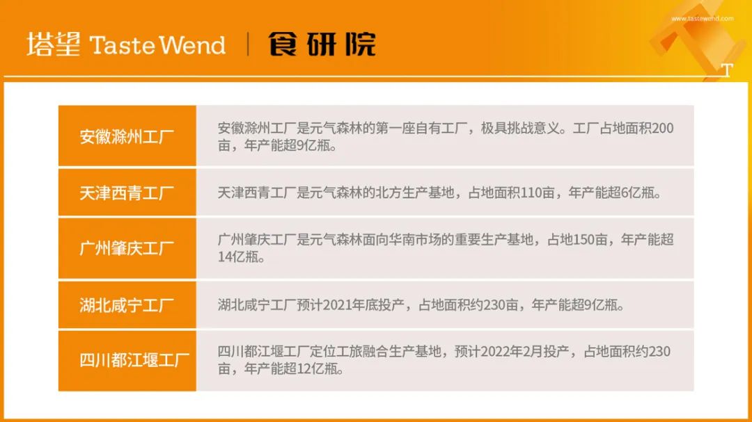 2月元气森林和江苏省太仓市人民政府签署了战略合作协议,正式宣布其自建的第6家智能化无菌碳酸生产线工厂即将在太仓落地。其他分布在安徽滁州(华东)、广东肇庆(华南)、天津西青(华北)、湖北咸宁(华中)、四川都江堰(西南)等地筹建工厂并实现投产,初步构建起元气森林“超级城市群+自建工厂”的全国战略布局。