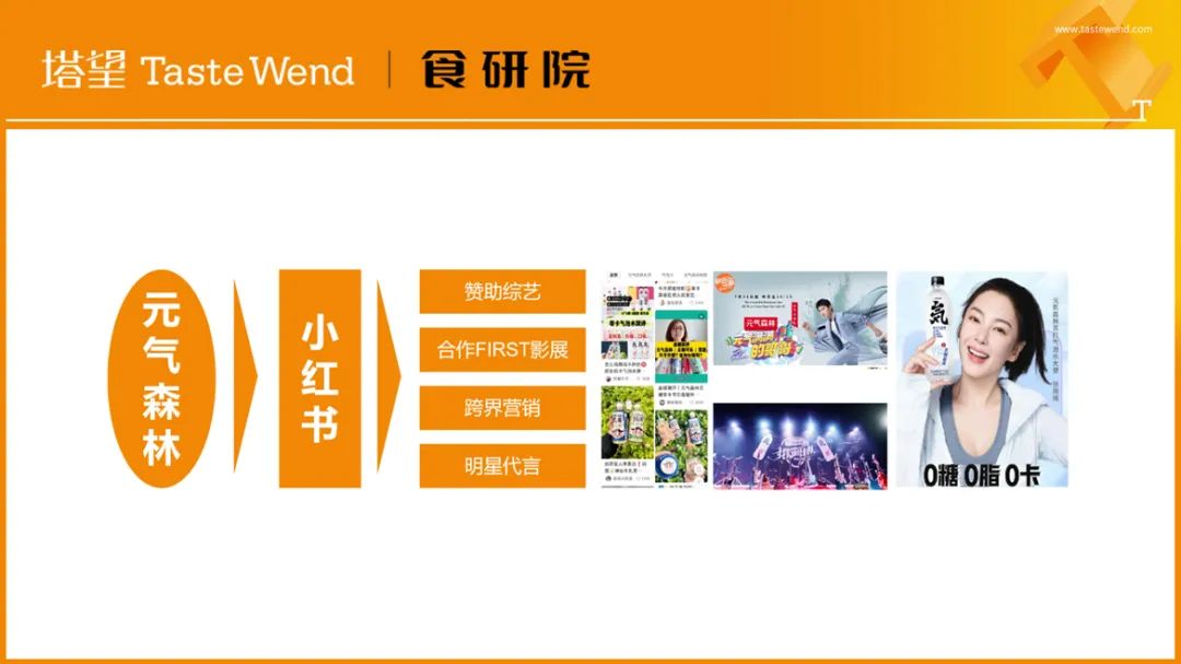 元气森林早期的传播将聚焦的战略运用的炉火纯青,围绕着年轻女性最为集中的平台——小红书,2018和2019年元气森林开始在小红书等内容平台上集中投放,进行线上平台的疯狂种草。