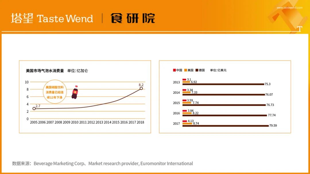 同年,气泡水和燃茶产品登陆美国,开启国际化步伐。