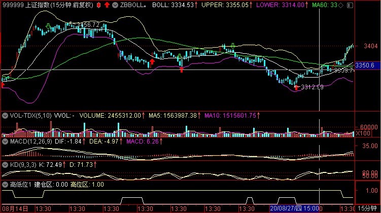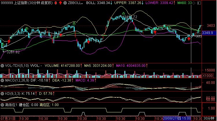 60分钟MACD金叉<看多>。60分钟KDJ金叉79/59.<震荡>。30分钟MACD金叉<看多>.30分钟KD金叉94/89.<震荡>.