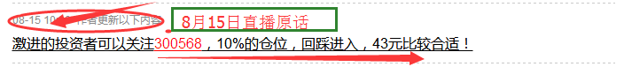 笔者在8月15日推荐的300568目前也开启反包破位上升模式,大家可以继续持股获利了!