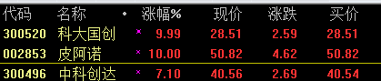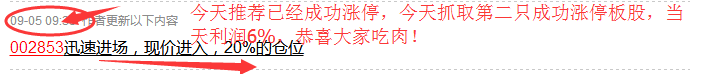 笔者今天推荐的第二只股002853已经成功涨停了,今天笔者推荐的4只股票已经两只涨停,第一只是300520科大国创,恭喜投资者获利!