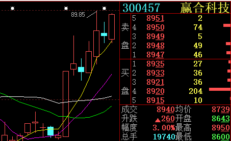 喜讯:300457赢合科技强势涨停,笔者在8月28日第一次78元推荐,8月31日高抛赚取15%的利润,同时在8月31日的83.40成功吸回,第二次操作利润14%,两次操作累计利润近30%!