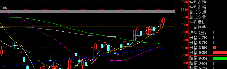 技术上来看,大盘在突破3200关口后,以及突破前期套牢筹码颈线位置后,近三日走出一个红三兵向上攻击的K线组合,而短期均线也开始呈现多头向上形态,有利于后市大盘的继续上攻。