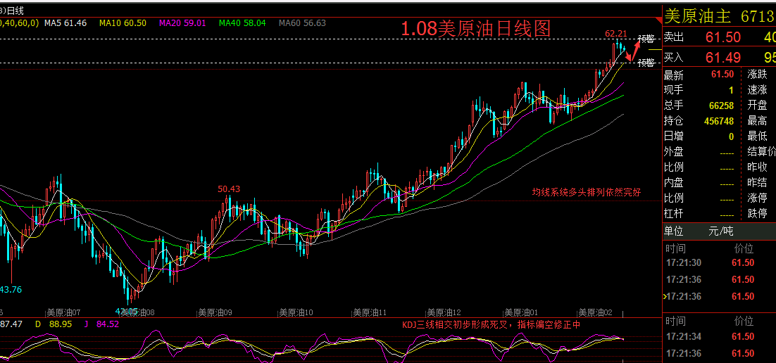 2、稳健者短线观望日MA5一线61.45得失,待美盘前夕若是破位顺势跟进,不破看情况考虑是否短多。