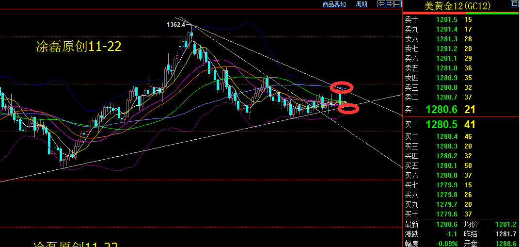 2、下方回撤1276一线做多,止损3美金,目标看到1281