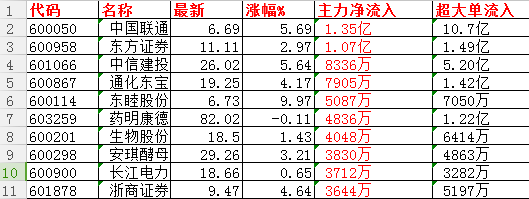 沪股通净买入前10个股统计: