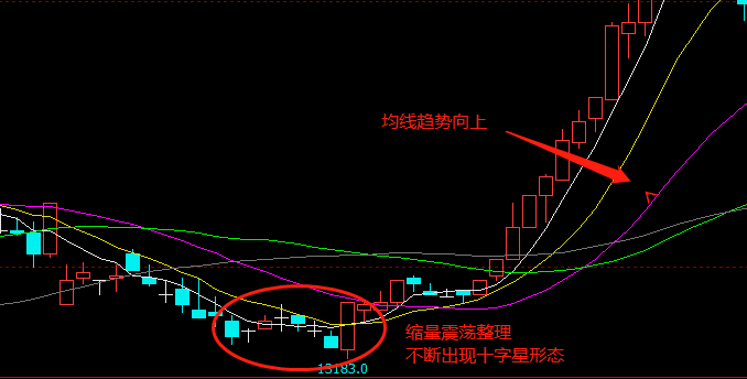 我们所说的前提便是恒指价格经过一波下跌,处于底部,并且逐渐企稳,恒指价格震荡缩量整理,并且不断出现十字星,已经跌无可跌,此时可根据出现的十字星选出所要的操作。