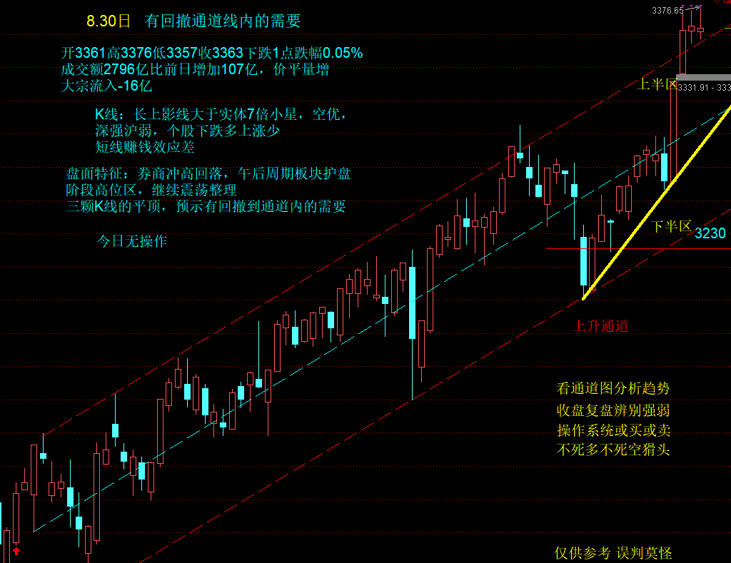 看通道图分析趋势 收盘复盘辨别强弱 操作系统或买或卖 不死多不死空猾头