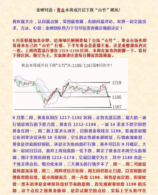 金蝉耳语:黄金本周或开启下跌“山竹”飓风!