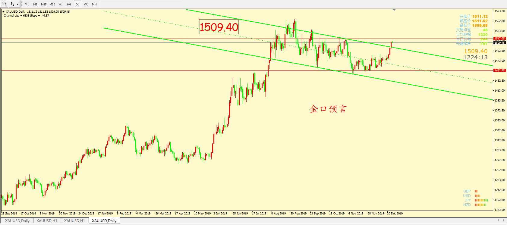 消息面方面,本周四小非农初请失业金人数降至22万,低于预期值22.4万和23.4万,预言对比前几周数据本周初请失业金的申请明显抵消的前期失业金的增长,预示着美国就业数据依然强劲,这无疑后市利多黄金。另外周四是欧美国家圣诞节之后的首个交易日,消息面较为清淡。地缘政治方面已经有一段时间保持了安静。但黄金及美股均双双上涨,美股也不断地刷新前高。本周市场的总体状况是金银大涨,尽管市场风险成分不高,但避险需求却大幅攀升。黄金在2020年将会迎来更多的需求,展望市场新的一年全球经济增长将会回升,金口预言在此也祝所有笔者新年快乐,交易顺利!