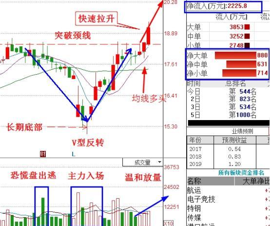迄今为止,共26家主力机构,持仓量总计1.41亿股。今日有大资金净流入2225.8万,在V型底部持续放量,脱离主力成本。现在股价突破V型颈线,受到10、20日线支撑,均线多头排列,再加上macd金叉和温和放量出现三连阳,多头趋势良好,该股上升趋势形成,快速拉升阶段开始。
