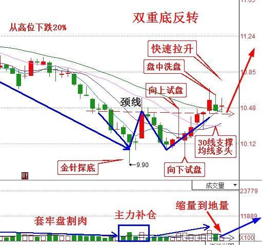 股价超跌20%,在底部形成双重底反转形态,左肩的金针探底企稳形态,说明底部确立,清洗获利盘和提高筹码稳定度。K线形成长上影线十字星,是主力向上试盘,盘中快速拉升又大单打压测试上方压力大小。为拉升做最后准备。当前均线多头,macd金叉,形成地量,说明下周将强势放量上涨。