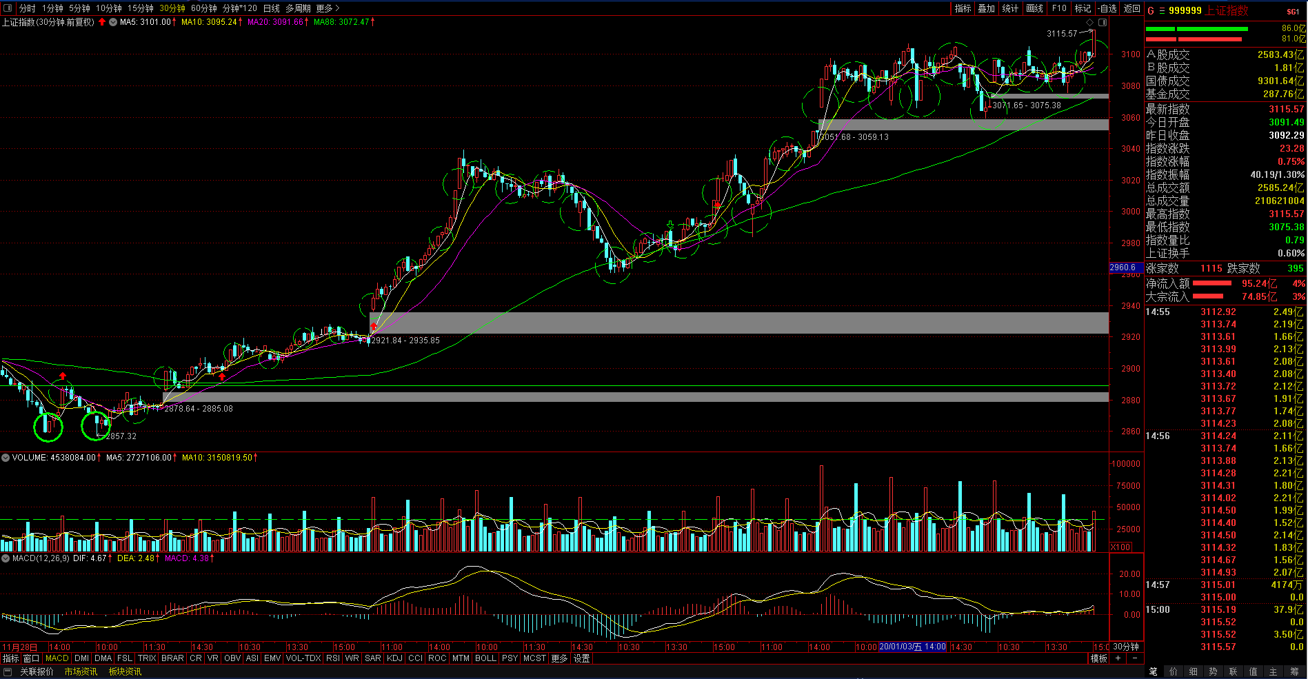大盘走势先抑后扬,股指缩量报收新高。