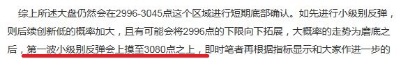 本周大盘仍然收出个一根小阴线,周线5连阴,量能较上周有所放大,但一九分化明显,三大超级权重板块银行、保险、石油逆市上涨。昨天博文中精准预测了大盘大概率走势为第一波小级别反弹会上摸至3080点以上。但同时也提前指数了一旦先反弹,则后市指数创本轮下跌的新低的可能性也随之增加,这一点大家不可不防。本博主向来以计算具体大盘点位和个股价位作为明确操作目标,通过分析大小概率走势并依据大概率走势来制定操作策略,以确保大多数操作的正确性来保证盈利。