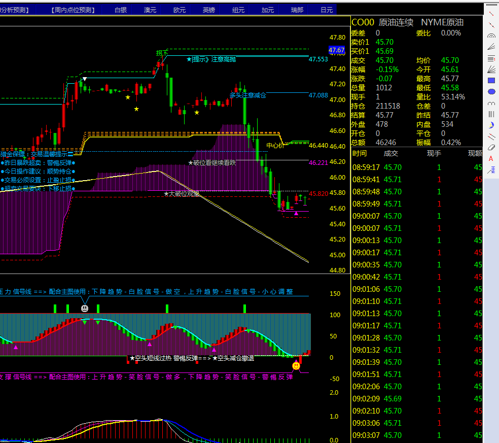 1.原油46.2下方被套的朋友,套单点位不是很多,原油反弹后继续走跌的可能性很大,利用后市的反弹趁机把多单果断出局,后市操作只需顺势反弹空,利润空间还不错可轻松挽回损失!