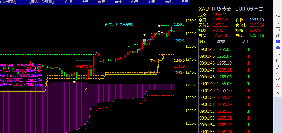 1、1238—1248区间空单被套的朋友,现在行情出现回调趋势,但回调不是很明显,所以这个点位的空单资金大不必慌,拿着这个空单等回调小损出局,1256上方存在强压制,目前的情况来看,再次突破目前高点1252的可能性还是比较大的,手中持续空单的投资朋友建议回调小损出局,不见建议继续持有,很简单就目前的行情来看下周黄金必将是一个延续多头的趋势直奔1256阻力去。