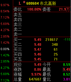 大家下午好!激进的投资者开盘进入 600604市北高新 ,20%的仓位,9.38元附近,